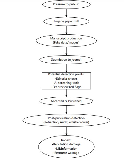 CrossRef and COPE have urged member journals to adopt unified protocols for detection and response. Figure 1 illustrates the typical lifecycle of a paper mill-generated manuscript and the points at which detection may occur.